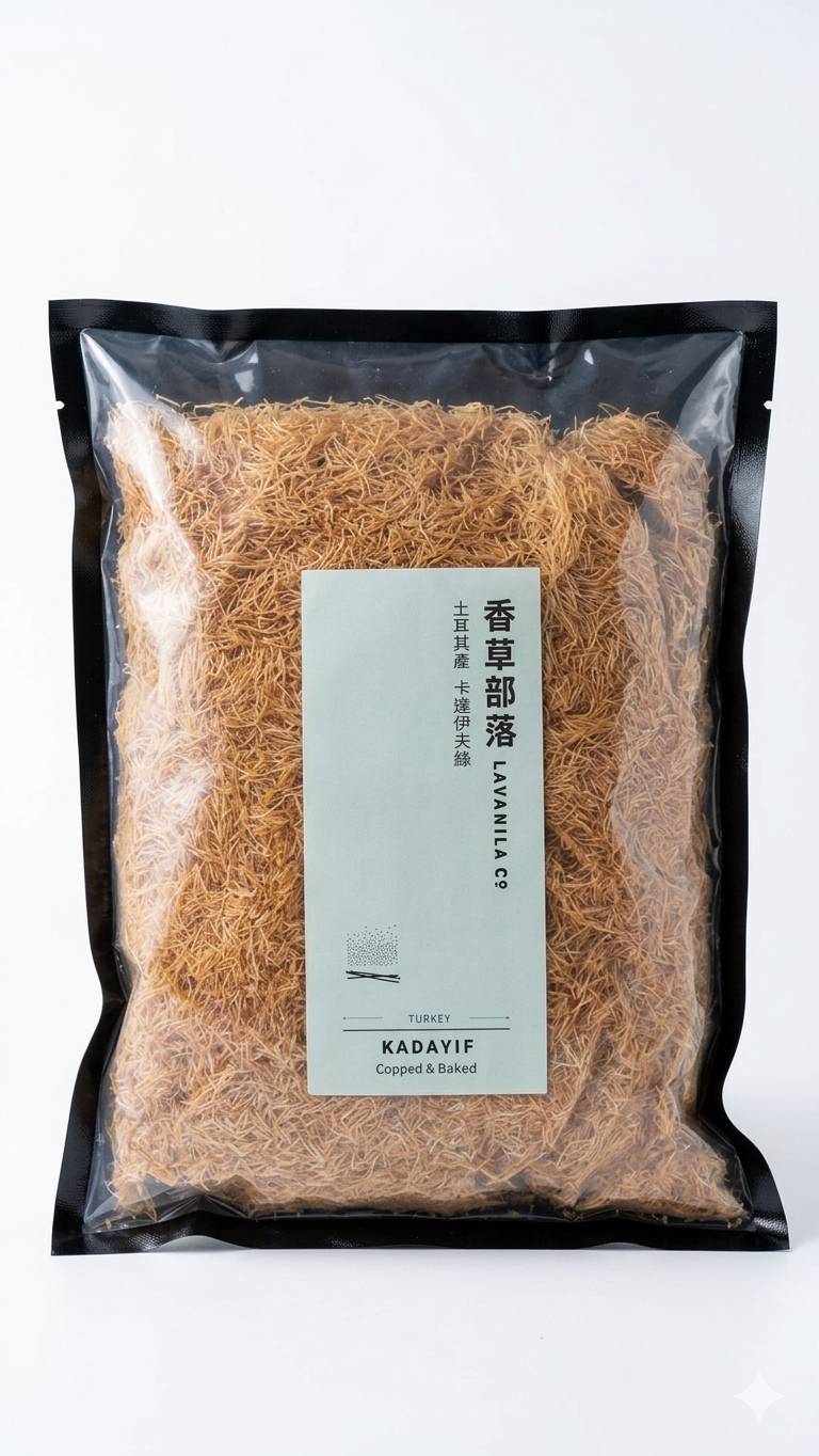 香草部落為職人引進中東傳奇原料 Kadayif。極致纖細的麵絲經烘烤後,呈現驚豔的爆裂酥脆感與細膩麥穀香,是復刻「杜拜巧克力」與層次甜點的核心靈魂。此款卡達伊夫為土耳其大廠製作,不具備任何添加物,秉持部落對原物料規格的嚴苛要求,為您提供最道地、穩定的專業級選材。